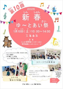 2025.12.25 第10回 新春ゆ~とあい祭のお知らせ 2025年1月10日(土)は毎年恒例の新春ゆ~とあい祭! ステージや子どもむけイベント、餅つきなど楽しいイベントが盛りだくさん。 全て無料ですので、ぜひご参加ください! チラシを見る